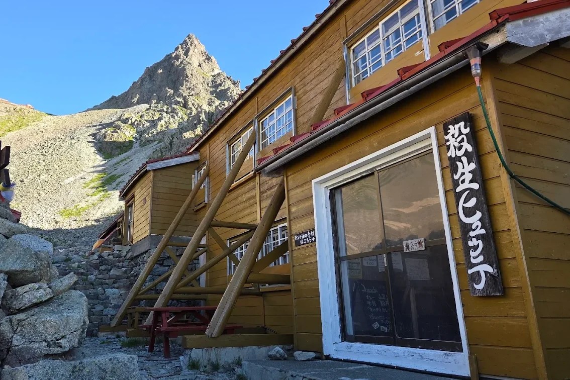 位於槍ヶ岳南側,U型圈谷內,位置較7.槍ヶ岳山荘低,但氣氛更安靜、清幽且溫馨,保留古老山屋感,屬於槍ヶ岳山荘集團系列山屋,此區住宿可3選1 ( 6.ヒュッテ大槍/ 7.殺生ヒュッテ/ 8.槍ヶ岳山荘)。