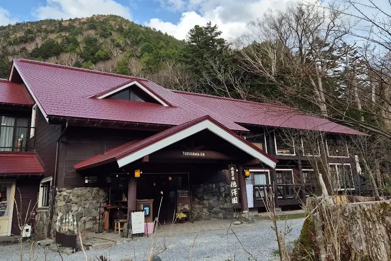 徳沢地區的住宿點,上高地中的「森林系旅館+咖啡廳」,亦販售多樣的甜點、咖啡,德澤園外有大草坪式的露營地,人潮多,設有日式、西式和上下舖房型,有浴場可供泡湯淋浴,此區住宿可3選1( 10.橫尾山荘/ 11.德澤園/ 12.徳沢ロッジ)。