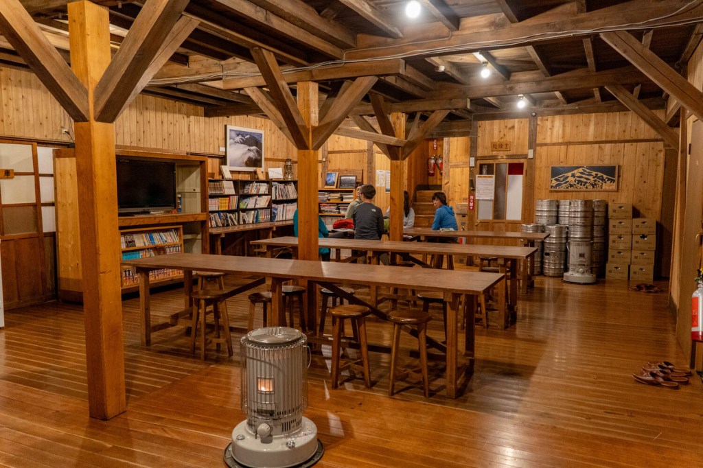 供自由使用、閱覽登山書籍和漫畫,後方設有乾燥室。