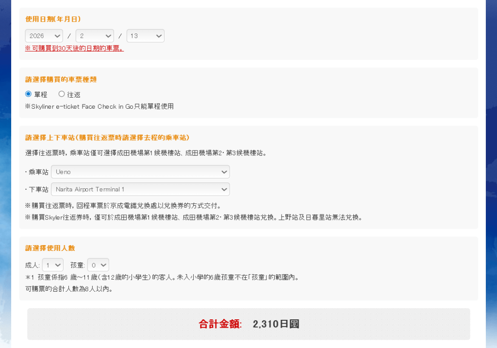 - 只適用於 Skyliner,搭一般京成列車仍要購票。