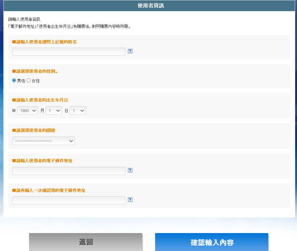 - Face Check in Go只限定販售單程票,回程票要分開購買。(來回是2筆訂單,所以臉部註冊分開註冊,共2次)