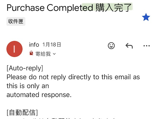 收到確認信件(Purchase Completed 購入完了),才算真正成功買到票~