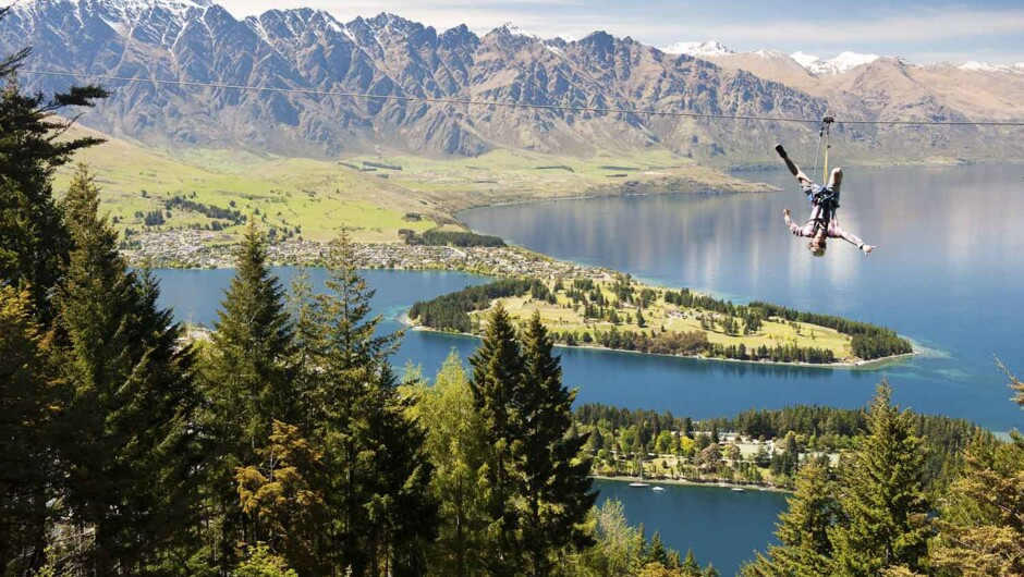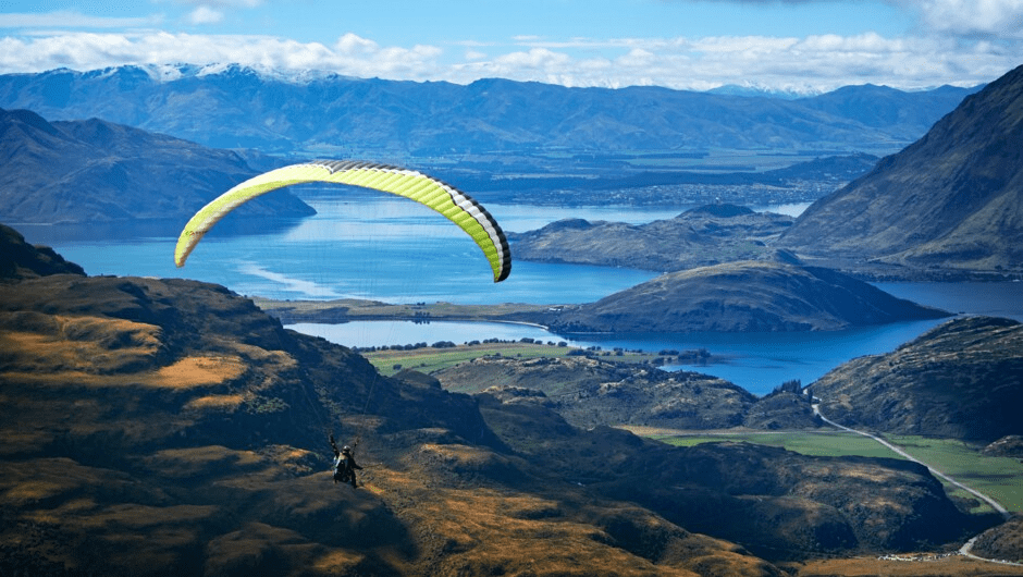 與專業教練一起從皇后鎮鮑勃峰起飛,在空中平穩盤旋。這比跳傘溫和許多,可以讓你安靜地欣賞湖光山色。