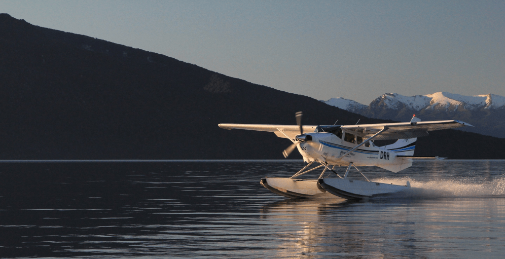 從湖面滑行起飛,換個角度俯看紐西蘭南島,起飛與降落在水面的體感非常特別。