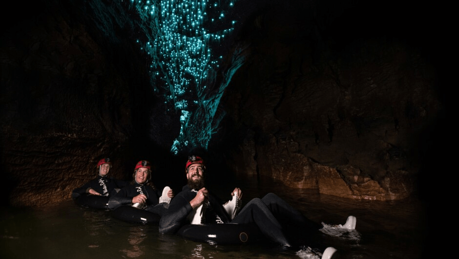 穿著潛水服,坐在橡膠圈上,在洞穴的地底河流漂浮,抬頭就能看見滿布洞頂的螢火蟲。