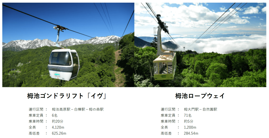 整趟為套票,路線為栂池高原-(EVE纜車)-栂之森-栂大門-(索道纜車)-栂池自然園,班次時間都是搭配好,可現場購票或刷卡。