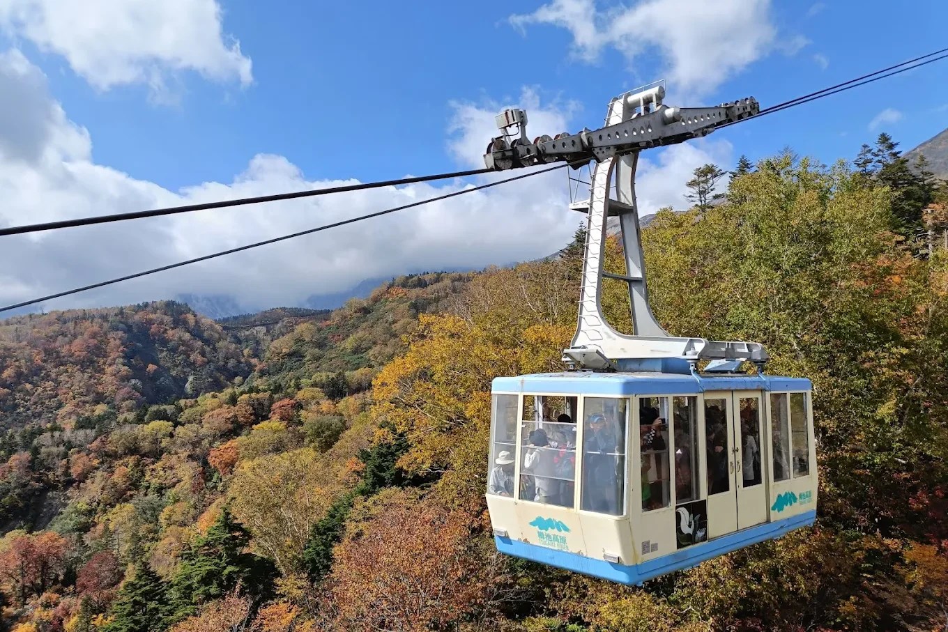栂池高原為箱型EVE纜車,一車6人,車程約20分鐘